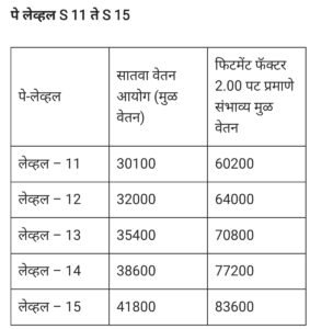 आठवा वेतन आयोगात पे लेव्हल S 1 ते S 15 पर्यंतचे सुधारित मुळ वेतनश्रेणी तक्ता ; फिटमेंट फॅक्टर 2.00 प्रमाणे ! 8th Pay Commission Scale Level