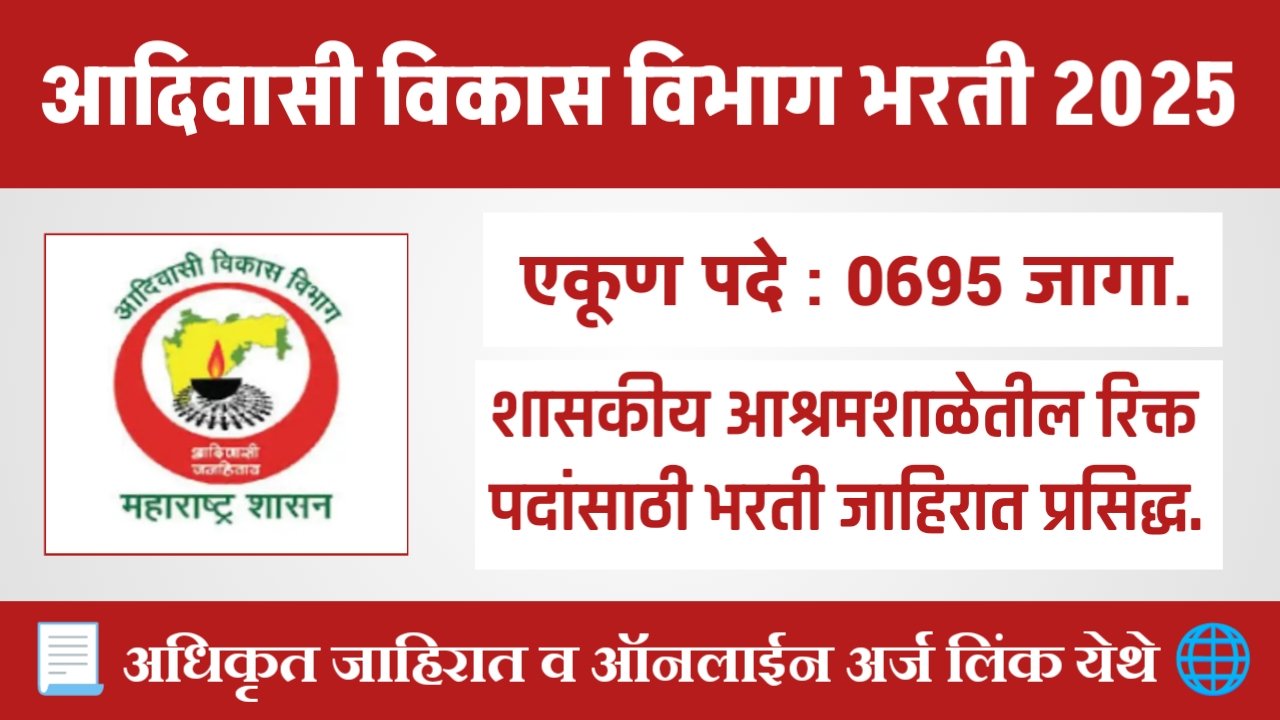 आदिवासी विकास विभाग’ मधील शासकीय आश्रमशाळेतील 0695 रिक्त पदांसाठी भरती जाहिरात प्रसिद्ध | आजचं अर्ज करा Adivasi Vikas Vibhag Recruitment