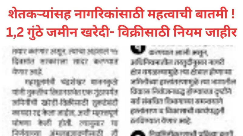 शेतकऱ्यांसह नागरिकांसाठी महत्वाची बातमी ! 1,2 गुंठे जमीन खरेदी- विक्रीसाठी नियम जाहीर Land Agriculture News